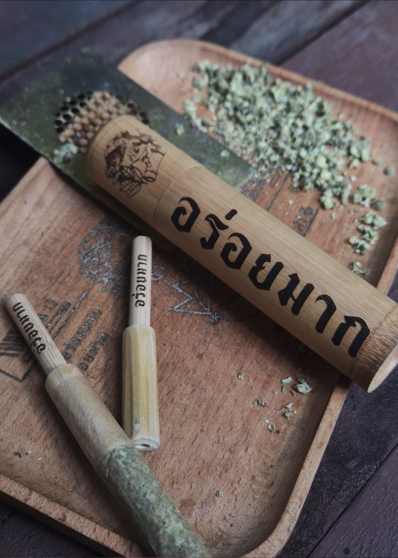 The Aroi Mak Joint Case Set includes two handcrafted bamboo filters and one bamboo case for storing your joints. Each piece is carefully carved by hand, giving every item its own unique character. The filters can be washed and reused, making them a sustainable alternative to disposable ones. After smoking, simply place the lit joint inside the bamboo case—the fire will naturally go out as the oxygen inside the case runs out. Bamboo helps soften the harshness of smoke, enhances the natural flavor of your herbs, and provides a clean, smooth draw. You can also insert a paper filter inside the bamboo to prevent ground herbs from entering your mouth, ensuring a more comfortable session. The biggest advantage of using bamboo filters lies in their balance of natural filtration and durability. Unlike paper or plastic filters, bamboo’s inner fiber structure reduces excess impurities and heat while remaining strong enough to be washed and reused multiple times. This makes it not only eco-friendly but also a long-lasting and economical choice.